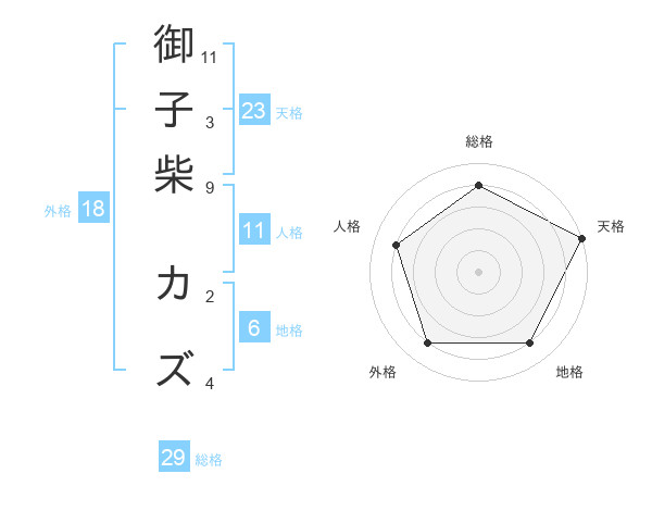 御子柴 カズさんの天格は23画の5点!