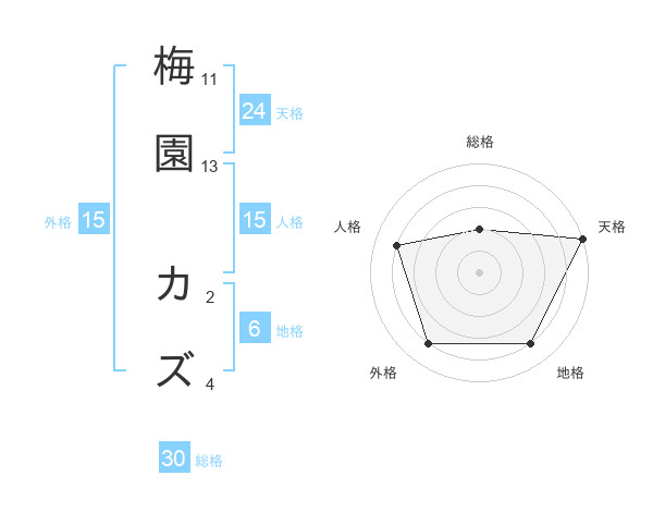 梅園 カズさんの天格は24画の5点!