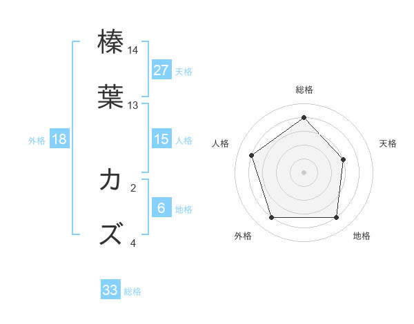 榛葉 カズさんを姓名の画数から五運を鑑定