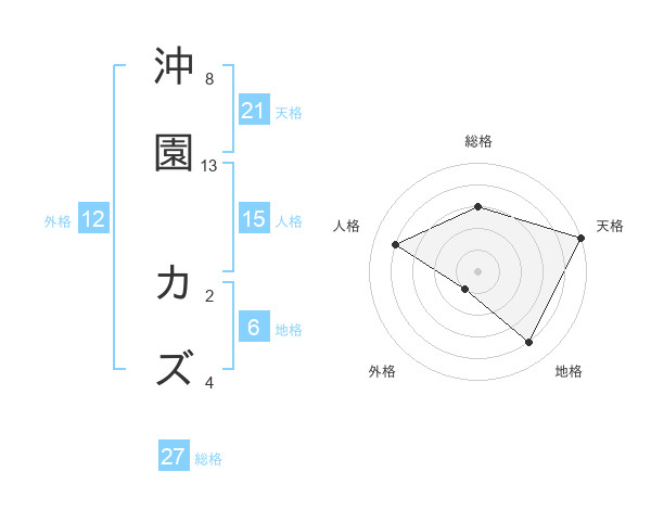 沖園 カズさんの総格は27画の3点!