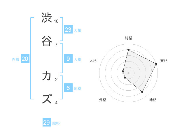 渋谷 カズさんの総格は29画の4点!