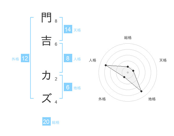 門吉 カズさんの総格は20画の1点!
