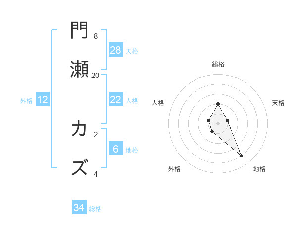 門瀬 カズさんの総格は34画の2点!
