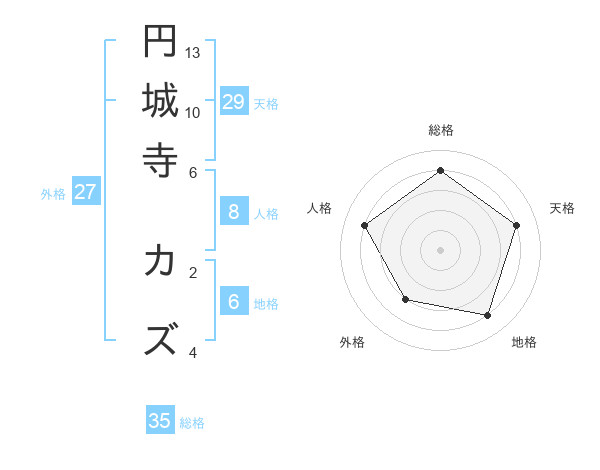 円城寺 カズさんを姓名の画数から五運を鑑定