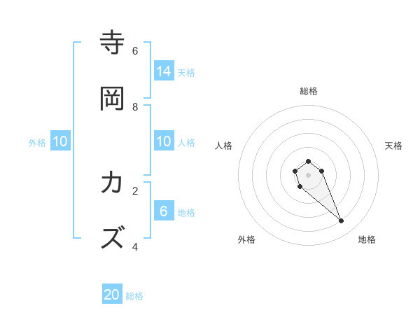 寺岡 カズさんを姓名の画数から五運を鑑定