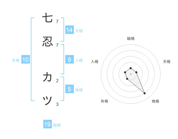 七忍 カツさんの総格は19画の1点!