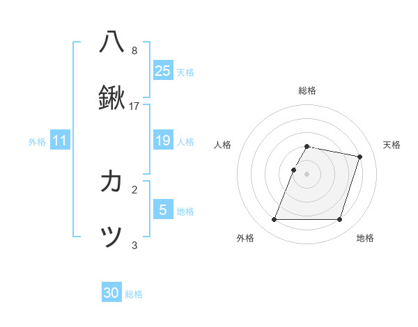 八鍬 カツさんの天格は25画の4点!