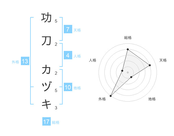 功刀 カヅキさんの外格は13画の5点!
