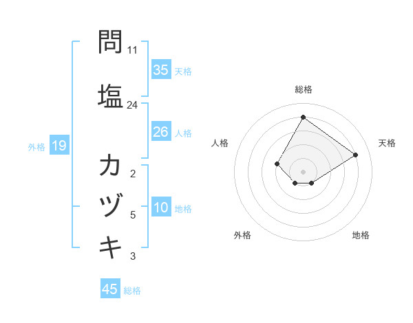問塩 カヅキさんの総格は45画の4点!