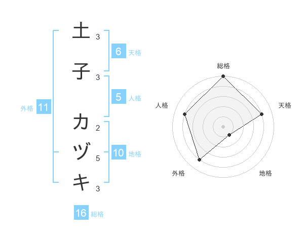 土子 カヅキさんの総格は16画の5点!