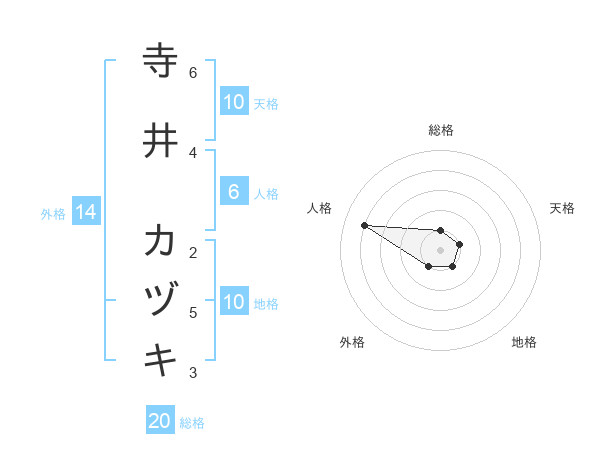 寺井 カヅキさんの総格は20画の1点!