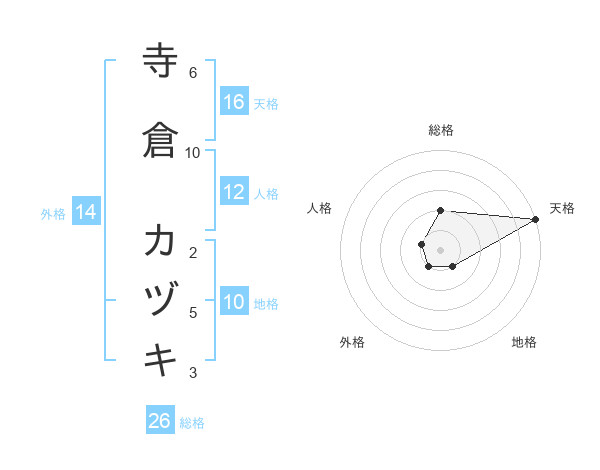 寺倉 カヅキさんの天格は16画の5点!