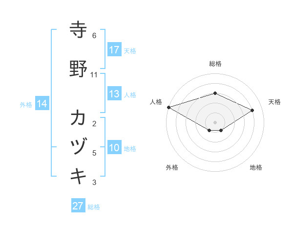寺野 カヅキさんを姓名の画数から五運を鑑定