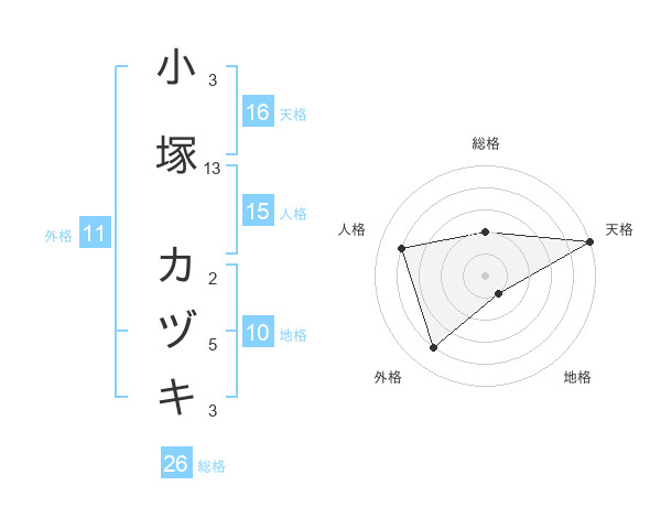 小塚 カヅキさんを姓名の画数から五運を鑑定