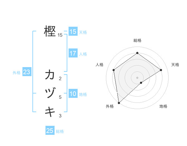 樫 カヅキさんを姓名の画数から五運を鑑定