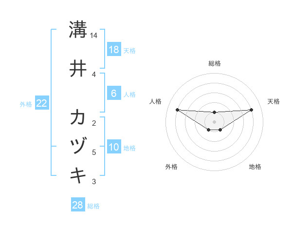 溝井 カヅキさんの天格は18画の4点!