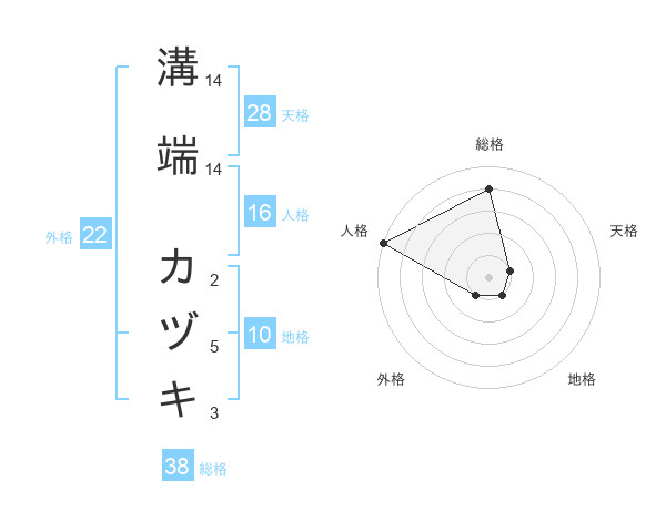 溝端 カヅキさんの総格は38画の4点!
