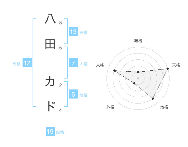 八田 カドさんの天格は13画の5点!