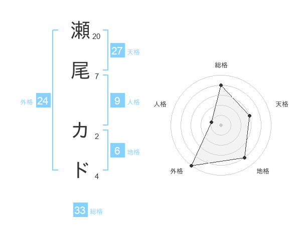 瀬尾 カドさんを姓名の画数から五運を鑑定