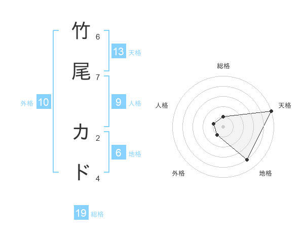 竹尾 カドさんの天格は13画の5点!