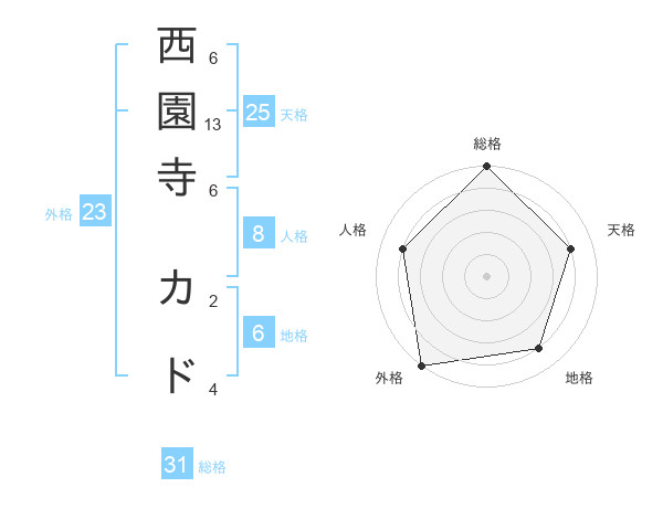 西園寺 カドさんを姓名の画数から五運を鑑定