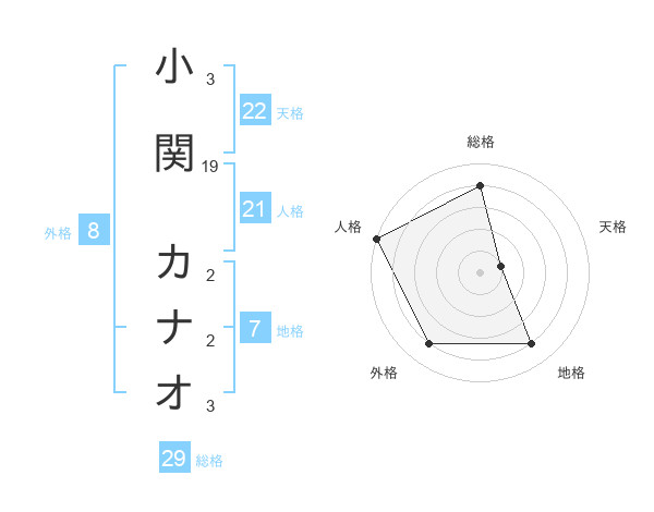 小関 カナオさんの総格は29画の4点!