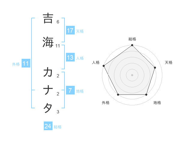 吉海 カナタさんを姓名の画数から五運を鑑定
