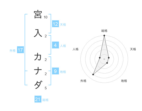 宮入 カナダさんの総格は21画の5点!