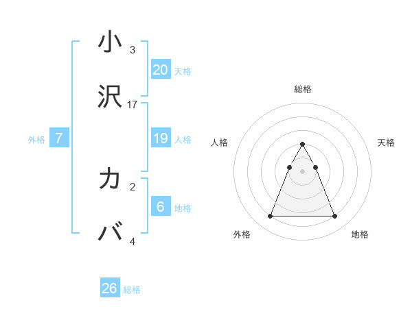 小沢 カバさんの総格は26画の2点!