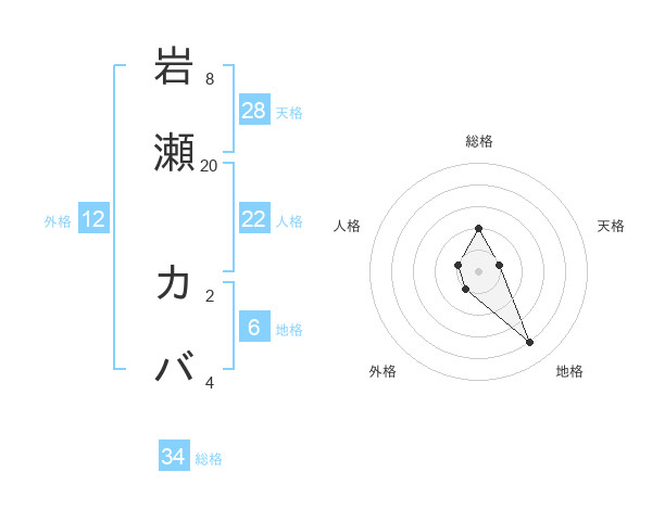 岩瀬 カバさんの総格は34画の2点!