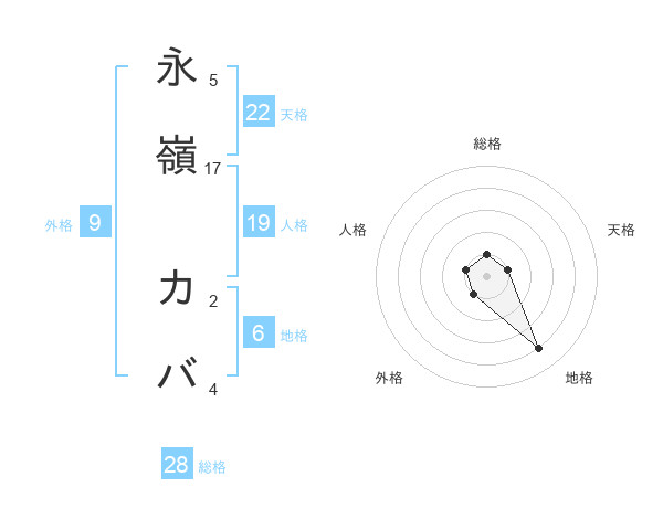 永嶺 カバさんの総格は28画の1点!