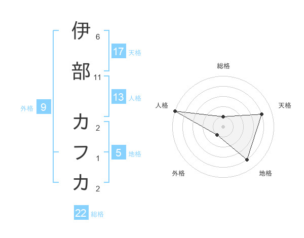 伊部 カフカさんを姓名の画数から五運を鑑定