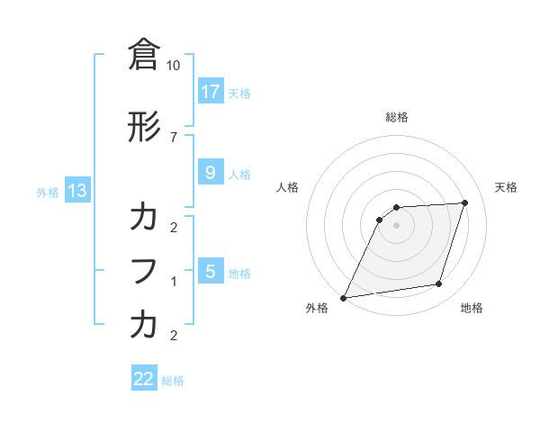 倉形 カフカさんを姓名の画数から五運を鑑定