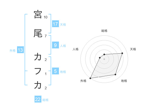 宮尾 カフカさんを姓名の画数から五運を鑑定