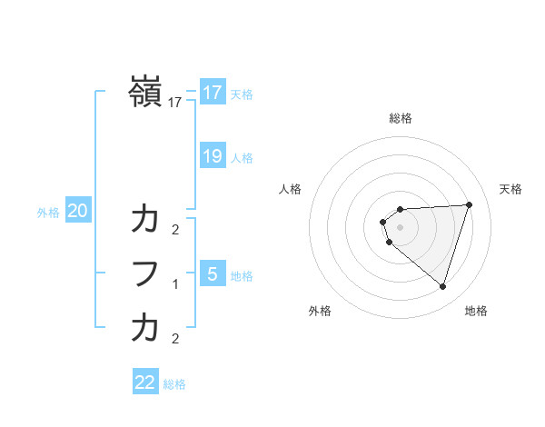 嶺 カフカさんの総格は22画の1点!