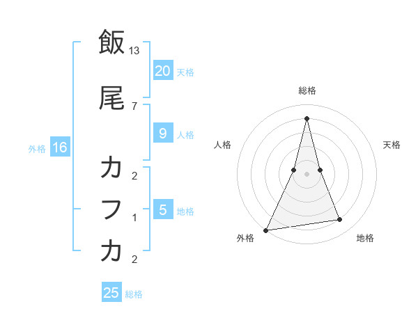 飯尾 カフカさんを姓名の画数から五運を鑑定