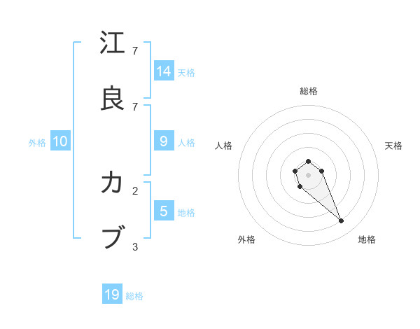 江良 カブさんの総格は19画の1点!