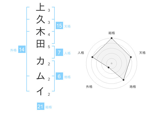 上久木田 カムイさんを姓名の画数から五運を鑑定