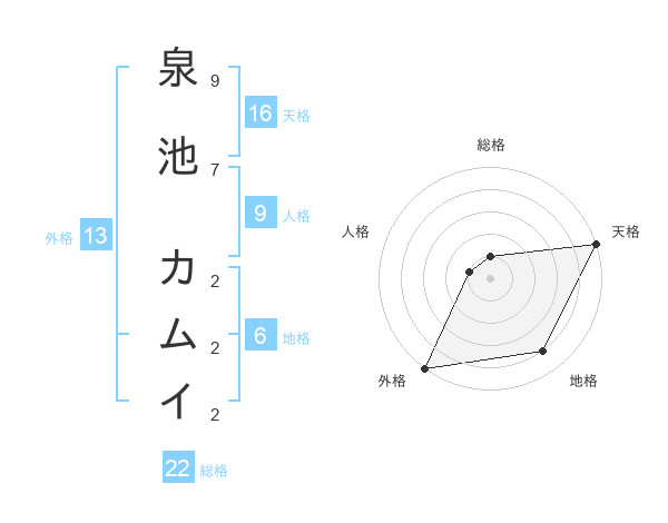 泉池 カムイさんの総格は22画の1点!