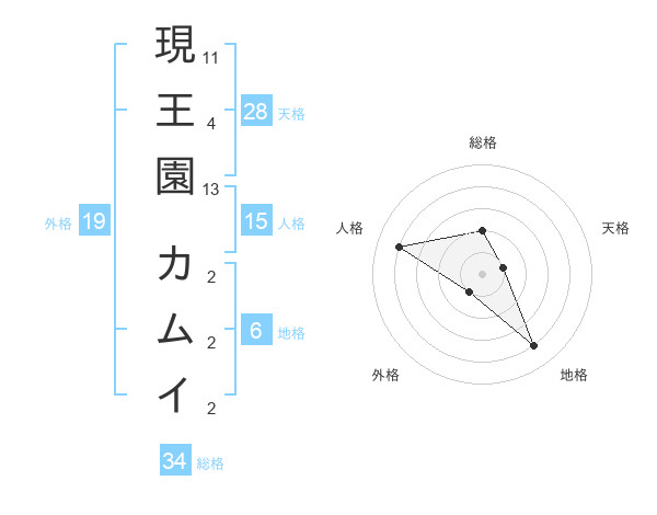 現王園 カムイさんを姓名の画数から五運を鑑定