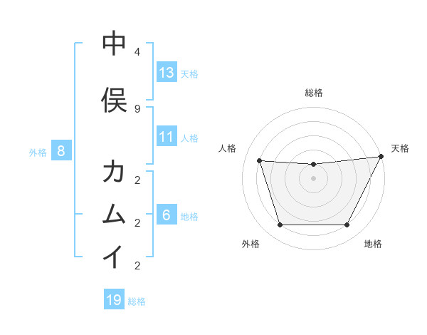 中俣 カムイさんを姓名の画数から五運を鑑定