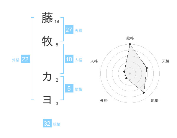 藤牧 カヨさんを姓名の画数から五運を鑑定