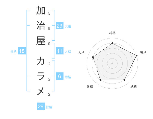加治屋 カラメさんの天格は23画の5点