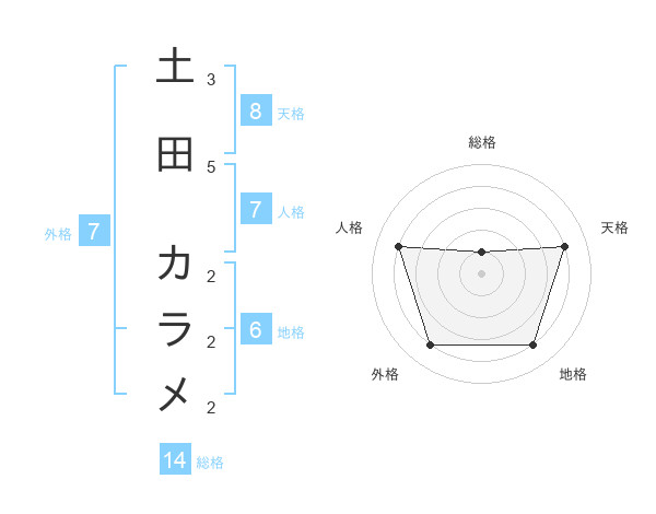 土田 カラメさんの天格は8画の4点!