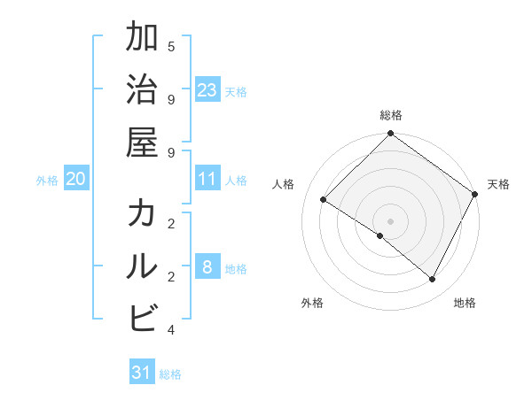 加治屋 カルビさんを姓名の画数から五運を鑑定