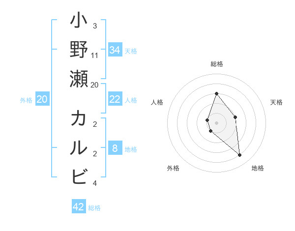 小野瀬 カルビさんを姓名の画数から五運を鑑定