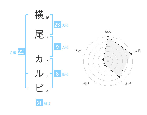横尾 カルビさんを姓名の画数から五運を鑑定