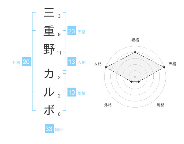 三重野 カルボさんを姓名の画数から五運を鑑定