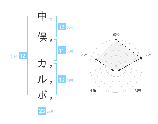 中俣 カルボさんの天格は13画の5点!