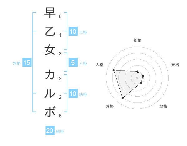 早乙女 カルボさんを姓名の画数から五運を鑑定